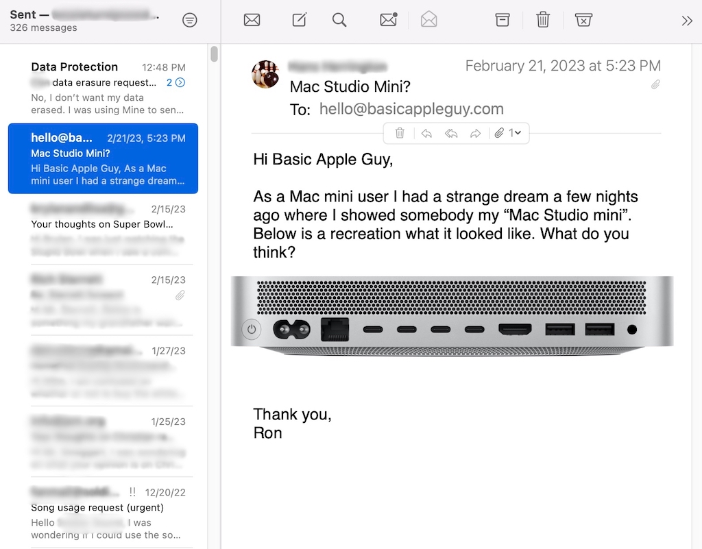 STILL don't believe me? Here is the email I sent to Basic Apple Guy. I sent an email to him as I don't have Twitter.