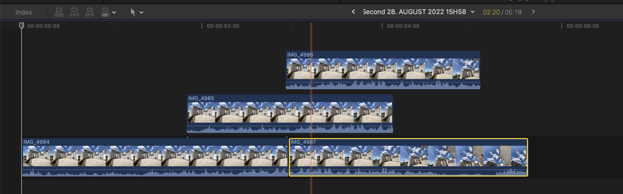 2. How can I cut those 4 movies together, to get a 8 to 10 second fluent movie. In the photos app all 4 Live Photos play smoothly, one into another.