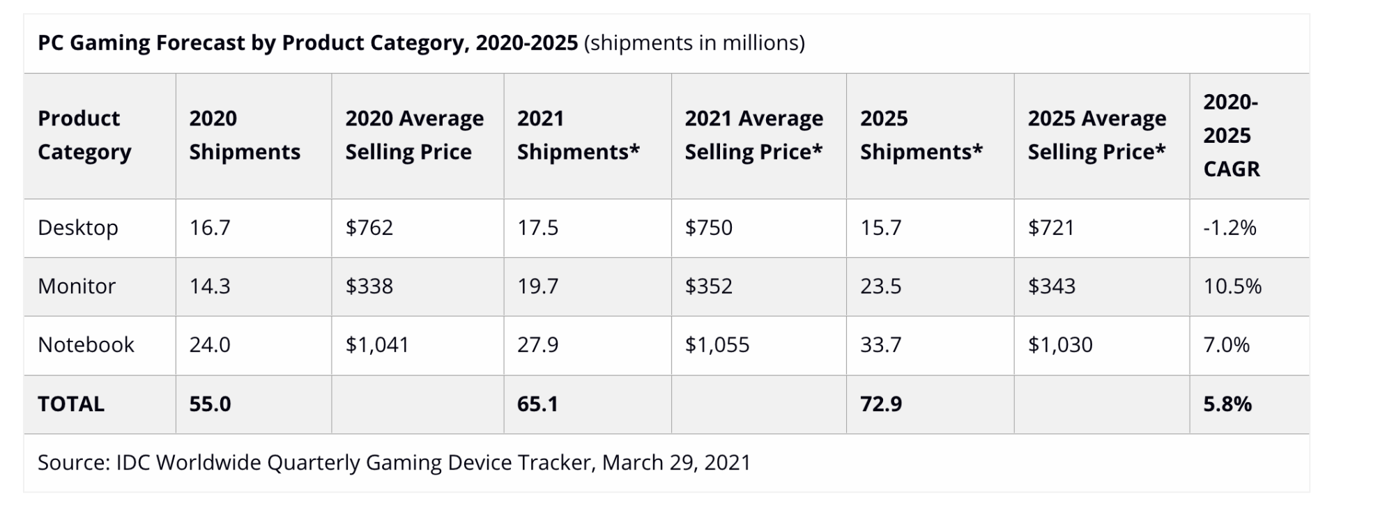 Let's use the 2021 shipments because we don't have 2022 numbers. Desktop + laptop gaming PCs = 45.4 million total in 2021.