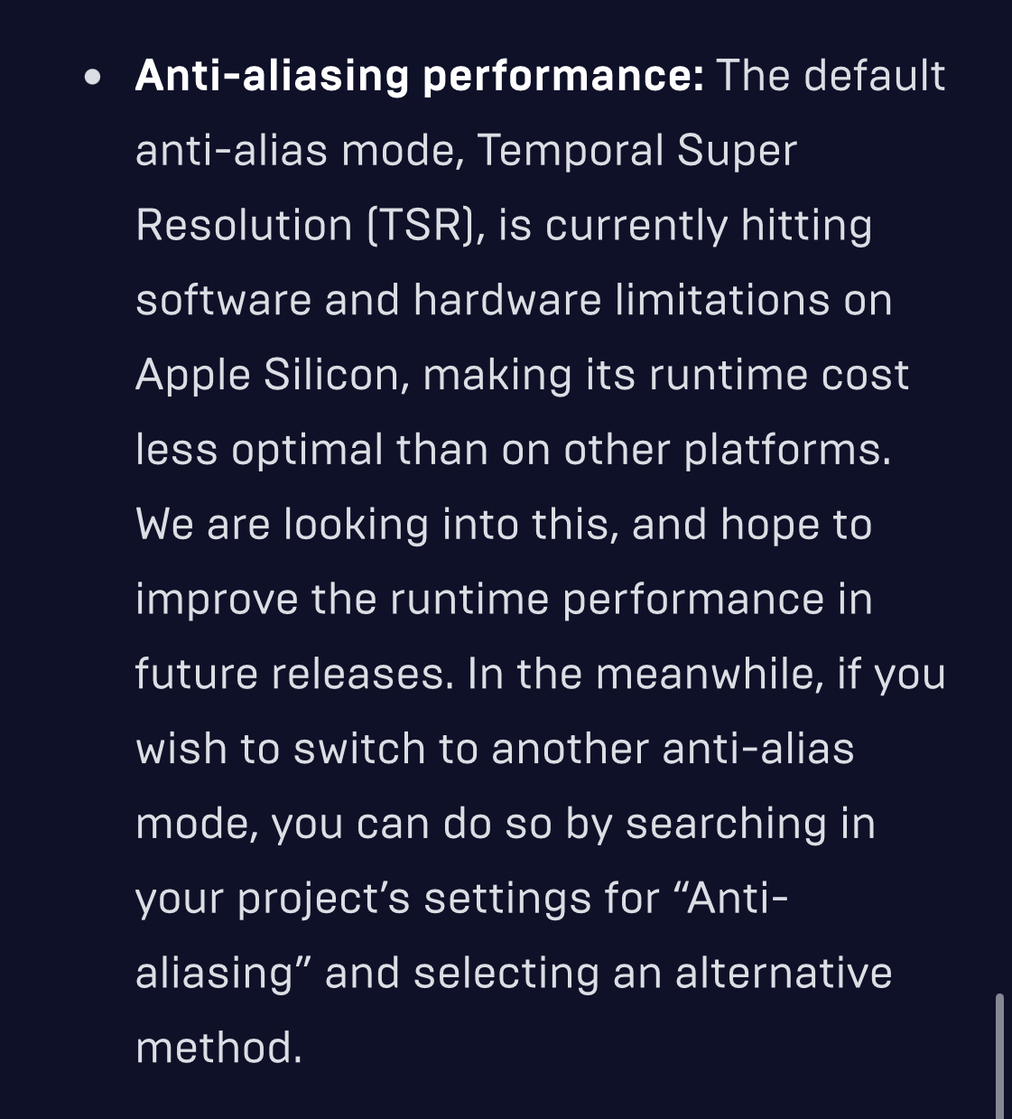 Which goes back to my original argument. Apple is foolish to believe that many AAA games will be ported just because games studios become aware of the GPU performance of recent Macs. Some games will be ported, but not many. Apple needs to change the mindset if they really want AAA gaming to flourish on their platform. They at least need to release some dedicated hardware (game controller, truly gaming-oriented Apple TV…) or purchase some game studios. They have shown no intention of doing either, so they should stop pretending that they are serious about AAA games.