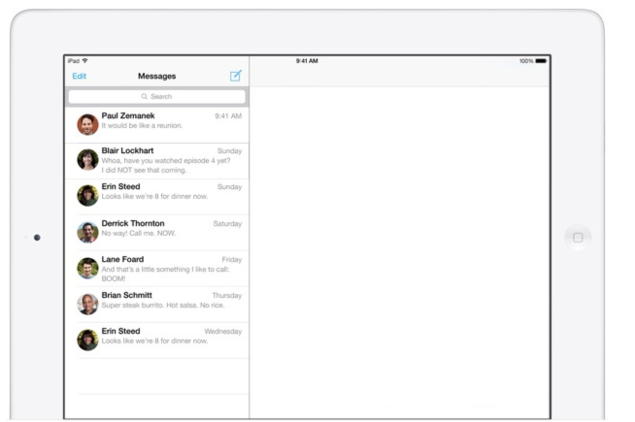 Here I am two weeks later and Messages still do exactly what you are asking. Open the app and the right column is empty until I choose a message in the left..