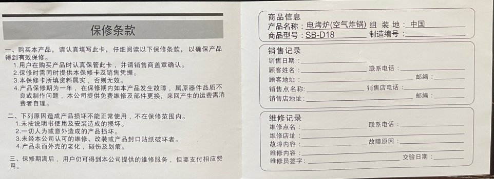 Open the warranty instructions. The cover is in English - Company name and "Warranty Card". But the inside ...