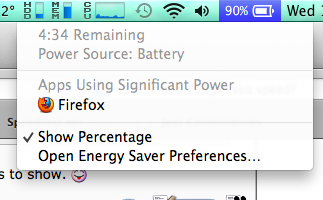 I see on your drop-down battery menu that it features firefox as being a heavy user of battery life. I don't see anything similar on mine.