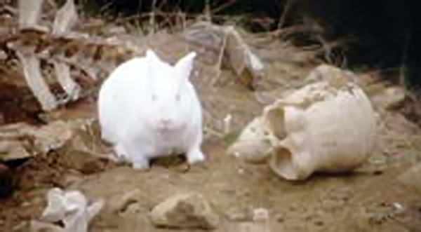 Did you have to fight off bunnies? They can be quite deadly, and this is just a normal sized one, much less giant. Cover your throat. I imagine the giant ones would just bite your head off.