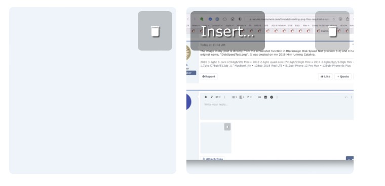 Would have been helpful if you provided the filename. I didn't even know that you could save a screenshot from the Speed Test app. Just gave it a try and see that the name is "DiskSpeedTest.png". Here's a test of uploading/inserting...