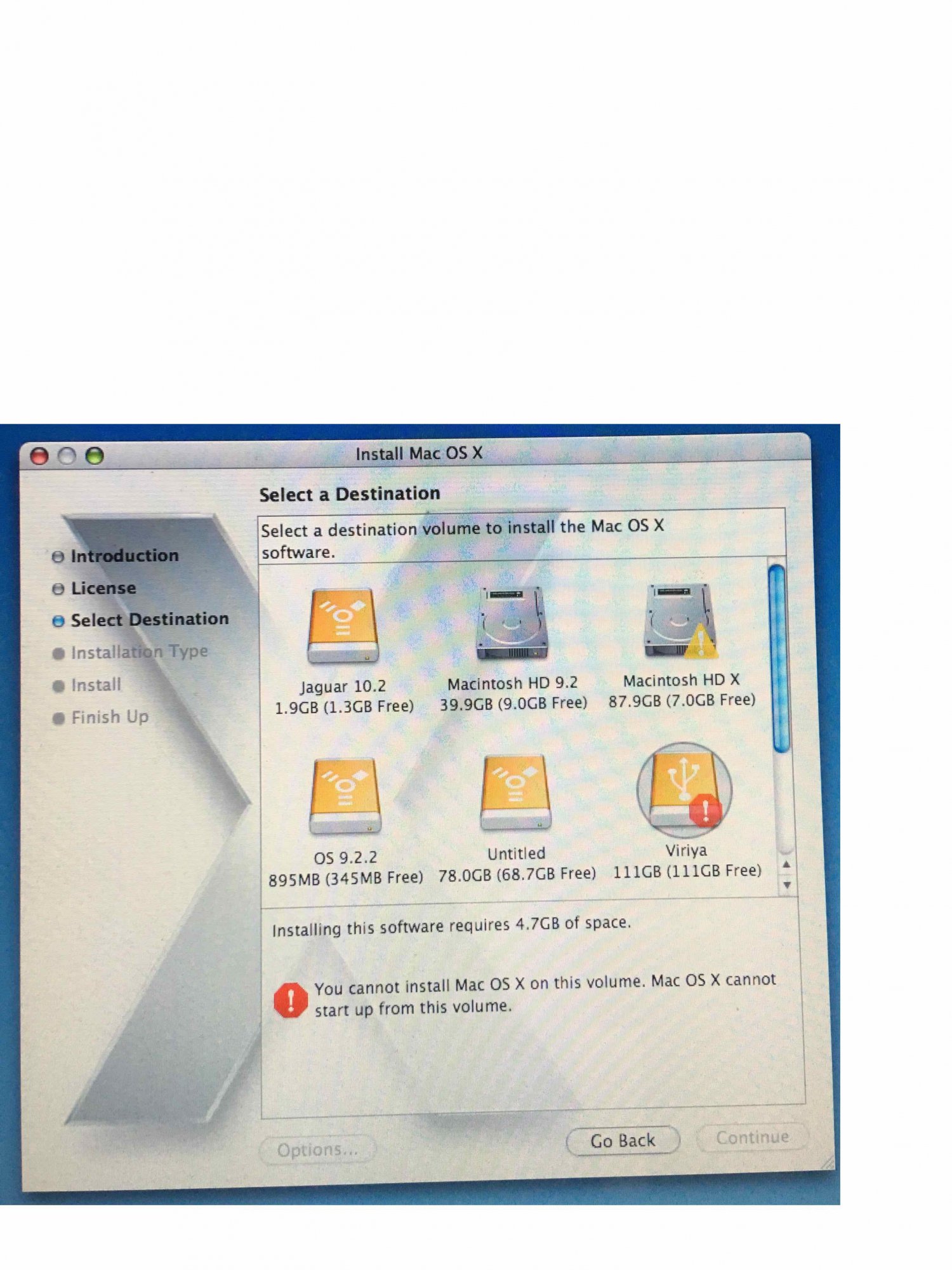 Recently I bought a Zheino 120GB mSATA SSD Q3 and an adapter to replace the damaged hard drive on a powerbook G4 867MHz. After I assembled the powerbook and tried to install OS X 10.4 with no success. Since the machine didn’t recognized the mSATA I assumed the problem was due to the SSD format. I disassembled the powerbook again and now, using a usb enclosure adapter I am trying to install Tiger through an old desktop G4 computer. However, I get the following message “ Cannot install Mac OS X on this volume”. Any thoughts on how to solve this?