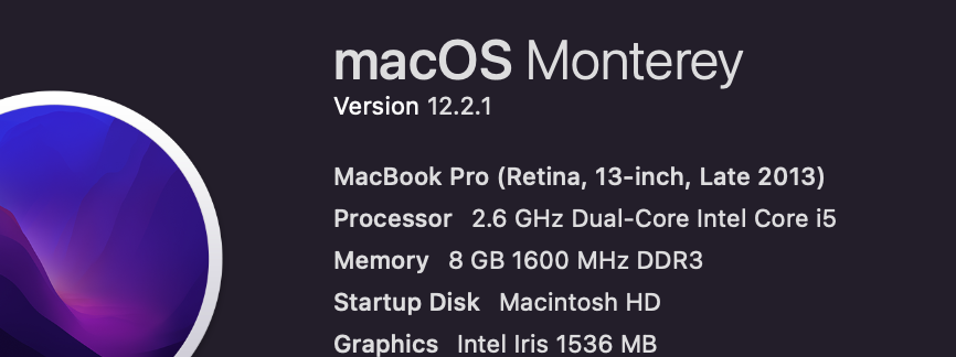 I have a "15-inch, Late 2013" MacBookPro11,2 (2 GHz Core i7, 8 GB RAM, Intel Iris Pro) that I'm now thinking about moving from Big Sur to Monterey.