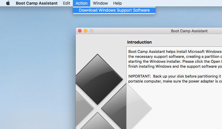 This download will contain the Windows drivers you will need to run Windows on your Mac. Allow the computer to do this for you via the Boot Camp Assistant application:- Open Boot Camp Assistant from Applications -> Utilities
