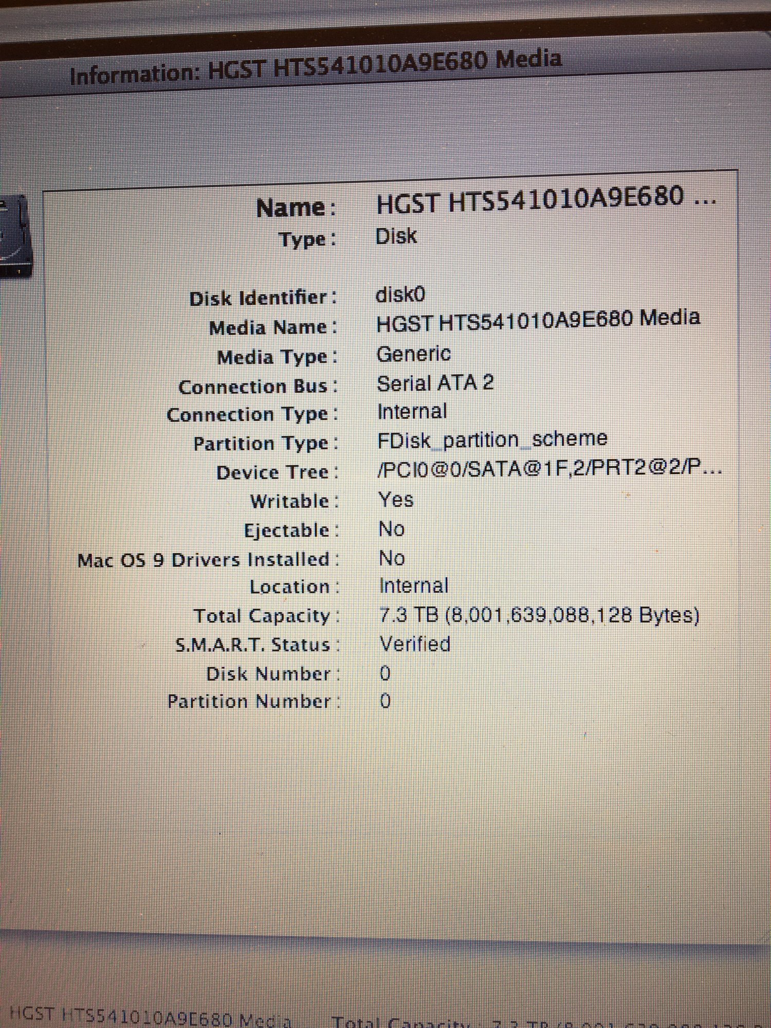 When I then go into Disk Utility and try to re-format and partition the hard drive, the hard drive shows up, but Disk Utility reads the capacity as 7.3tb, when in fact it is 1tb. When I attempt to re-format, Disk Utility returns an error, 'input/output error'.