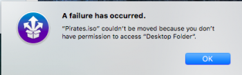 Stuffit Expander is open and looks like it's working, but once it goes all the way through I get the message "“Pirates.iso” couldn’t be moved because you don’t have permission to access “Desktop”." I only have one user on this computer, for which I am the administrator.