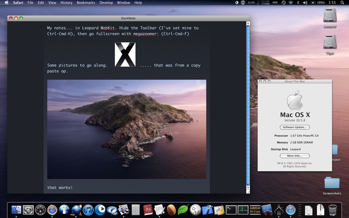 I’m not sure what kind of utility any of you might make of it, but I find it seems to work well, even on my clamshell iBook running TFF. I tested it as well in Leopard WebKit, so this appears to be browser-agnostic.