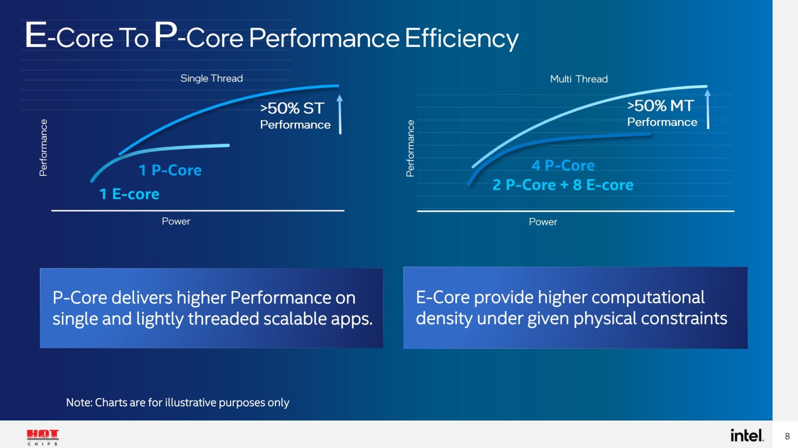 " ... This looks bad for the Gracemont based E-Cores. According to Intel, they can’t beat the P-Cores at any power level, meaning the E-Cores are only efficient in terms of area. ..."
