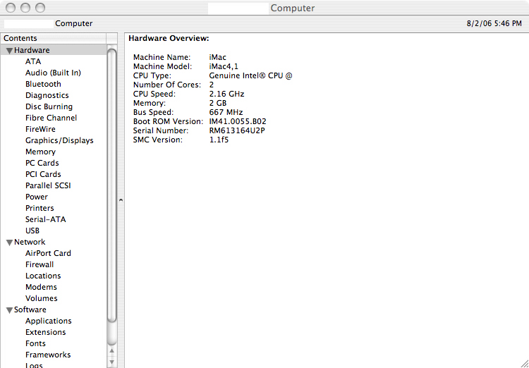 OS: Mac OS X 10.4.7 (Build 8J2135)