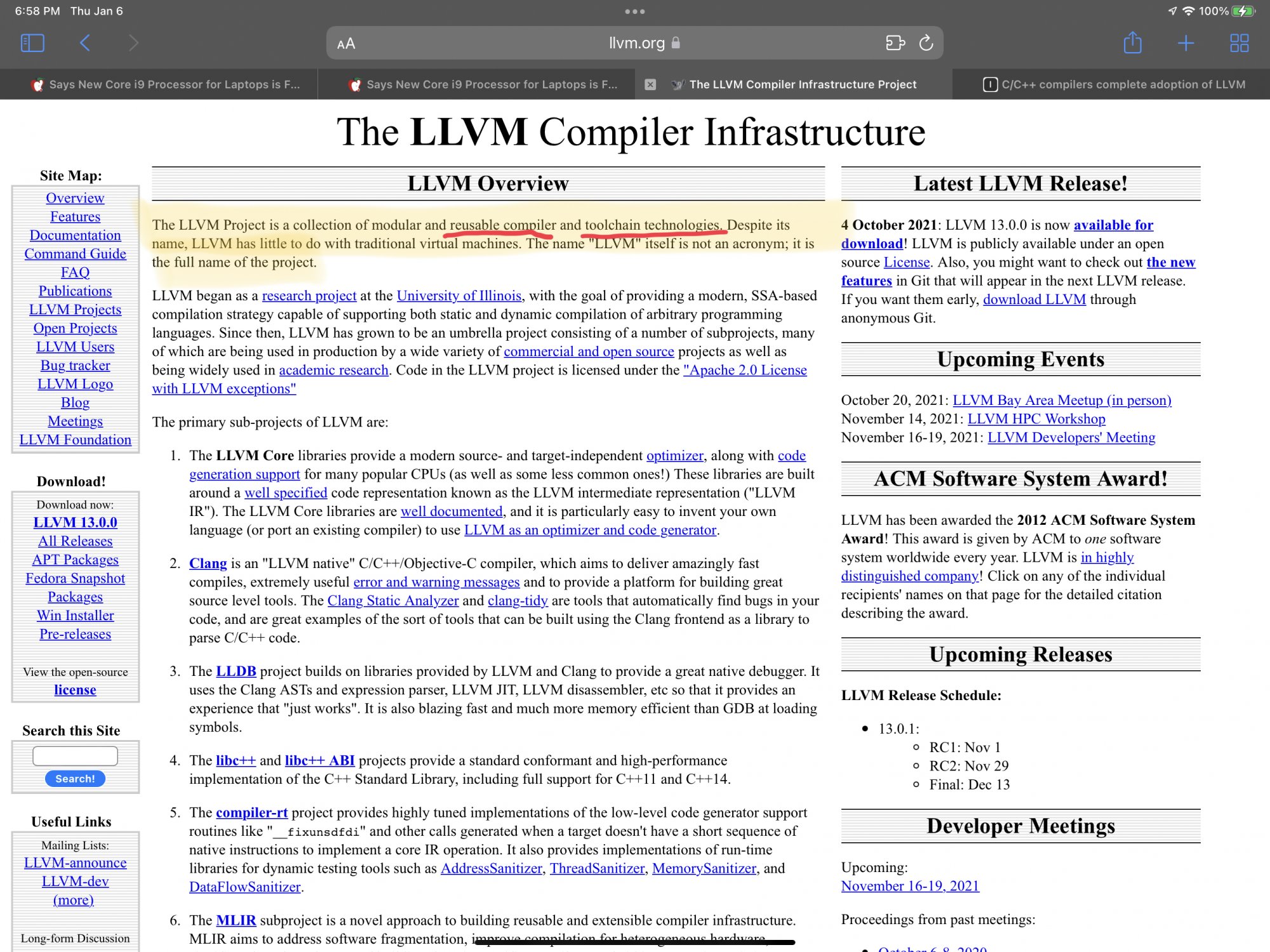 The LLVM Project is a collection of modular and reusable compiler and toolchain technologies. Despite its name, LLVM has little to do with traditional virtual machines. The name "LLVM" itself is not an acronym; it is the full name of the project.