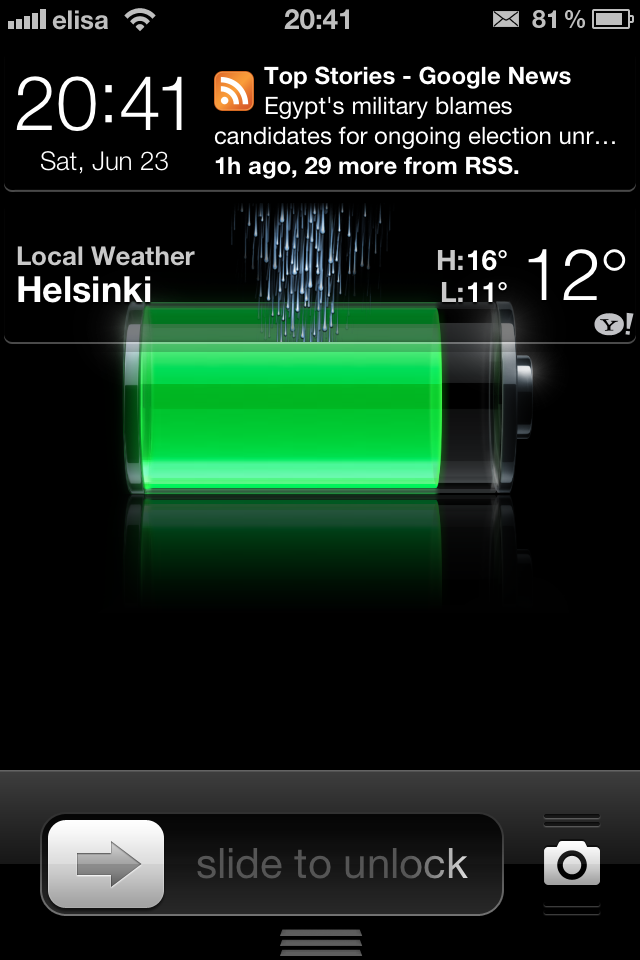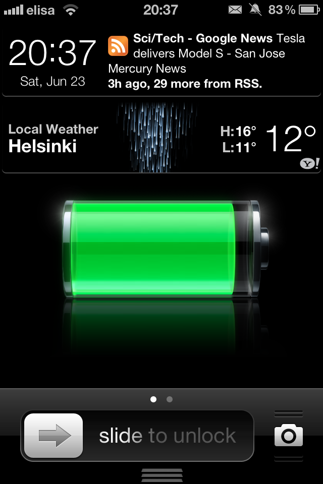 Could someone please test the view in lockscreen mode for me with your iphone plugged into the mains showing the battery icon.