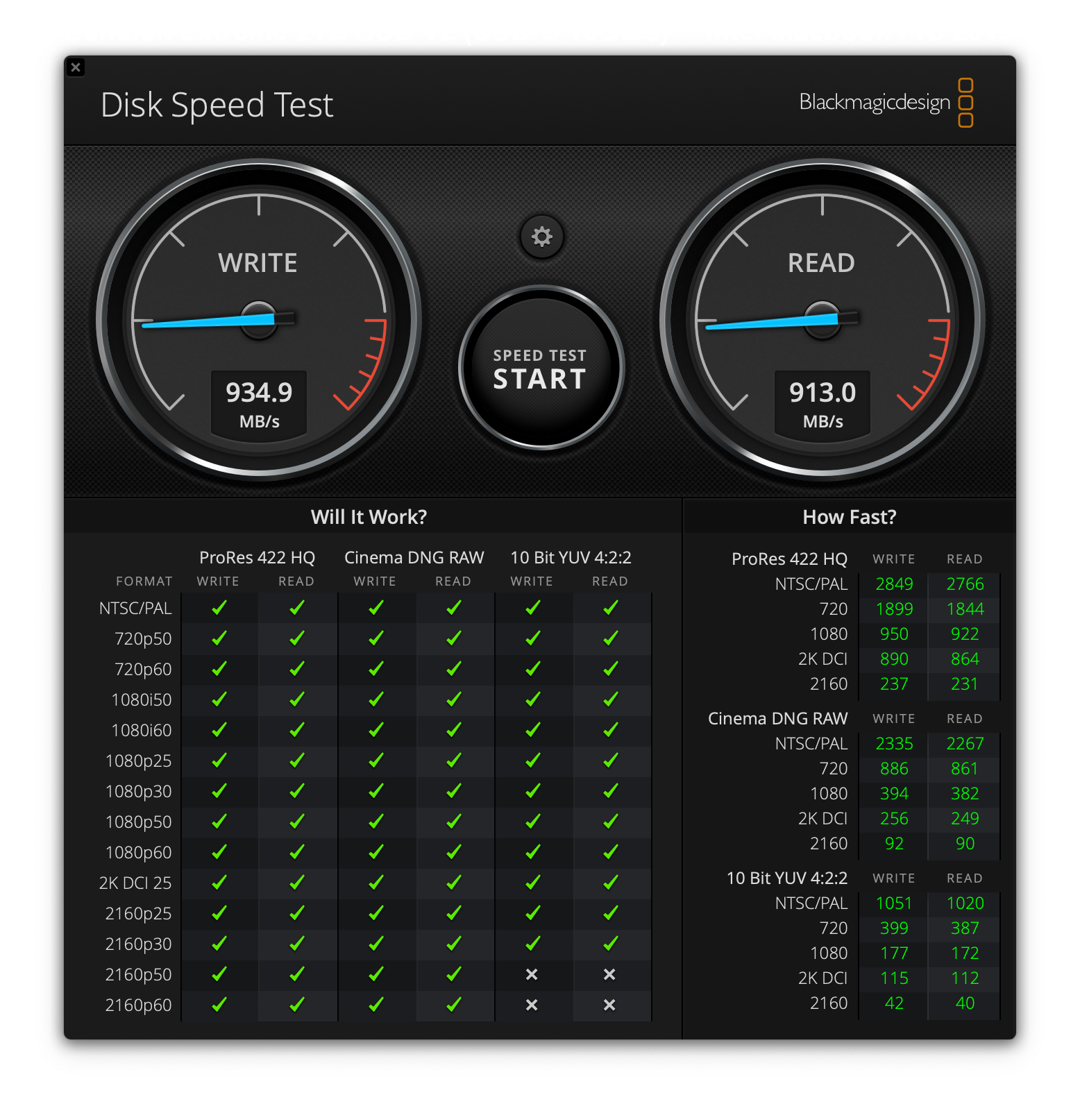 It’s limited to 5 Gb/s, giving read rates of about 400 MB/s and writes at about 430 MB/s. Fine for Time Machine backups, but bad with NVMe drives.