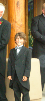 Okay, so here is a scanned photo that was taken in around the 1920s/1930s or so - maybe at some event(?) I see artifacts on the image, fuzziness, splotches, odd exposure, and subjects who are wearing clothing that would seem dated compared to even today's fancy dress. (If the photo doesn't appear at this line, it's the first one below.) BUT, here's the trick: This isn't a 1930s photo... sorry, I lied for the sake of making my point. This photo was actually taken at a wedding in 2007, and *sigh* that little kid is me. The second picture (either in this line or below) is the ACTUAL photo, which, in itself, almost looks to be an old photo that was colorized; but, in reality, it seems to be a bit too vivid in color - that's just the camera and lighting. Oh, and the attire for that wedding was specifically a suit with coat tails... in summertime Arizona weather. Lastly, that streak across the photo is a droplet of rain. That was lucky - it looked like an artifact one would see on a printed photo from the old days.