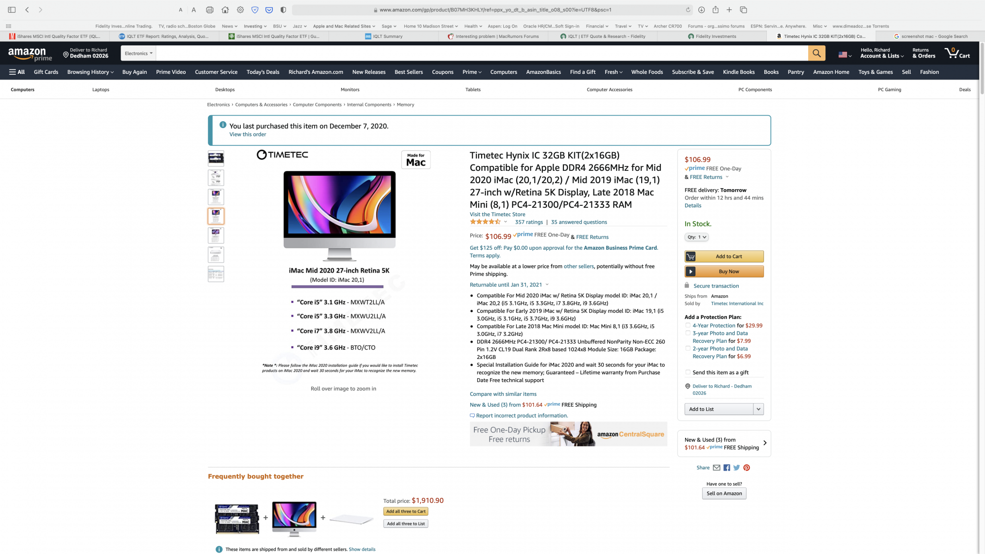 So I added 2 16gb sticks of memory to the new 2020 iMac. Everything was running fine but my download speed. I normally get 300gb but with the additional memory I was getting 215 with downloads constantly stopping. Just for my own curiosity I took out the 32gb and repositioned the original 8gb I got from Apple. My download speeds immediately went back up to 315gb.