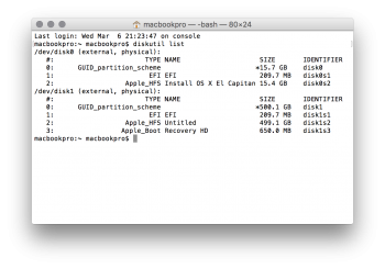 2. When booting from the source (external El Capitan HDD) the computer does not see the internal drive at all (picture 2).