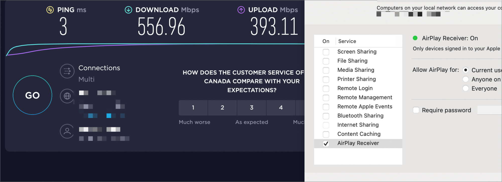 I'm on Monterey + Unifi network + Airplay Receiver enabled. This is my normal AC speed.