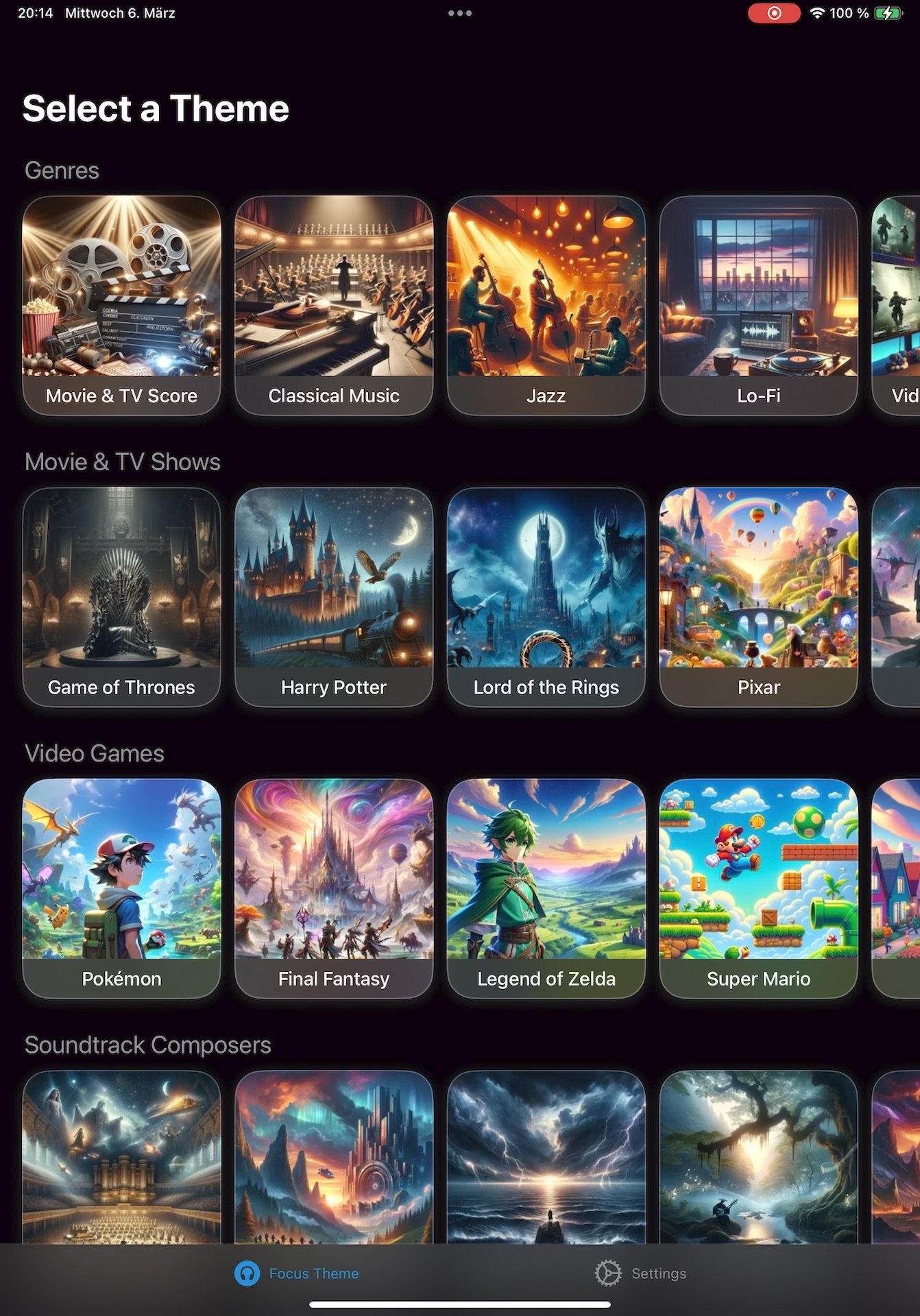You like to work with background music? And you want to improve your productivity with the Pomodoro (25m / 5m) technique? Then my new app is what you've been waiting for: FocusBeats provides selected themes for music like movie soundtracks or classical music. And automatically plays & pauses the music during focus & break periods. Discover focus music for every mood!
