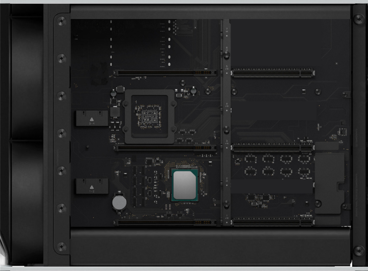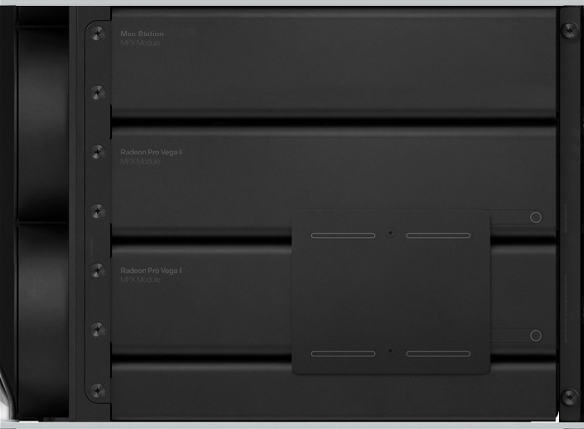 Probably look at the 7,1, power suply at the bottom, plus the height of two full-MPX bays, then processor, ram and (on a separate card) default IO above that, possibly even on a 90 degree mounted sub-board, like the way the 4,1/5,1 cMP processor board is.