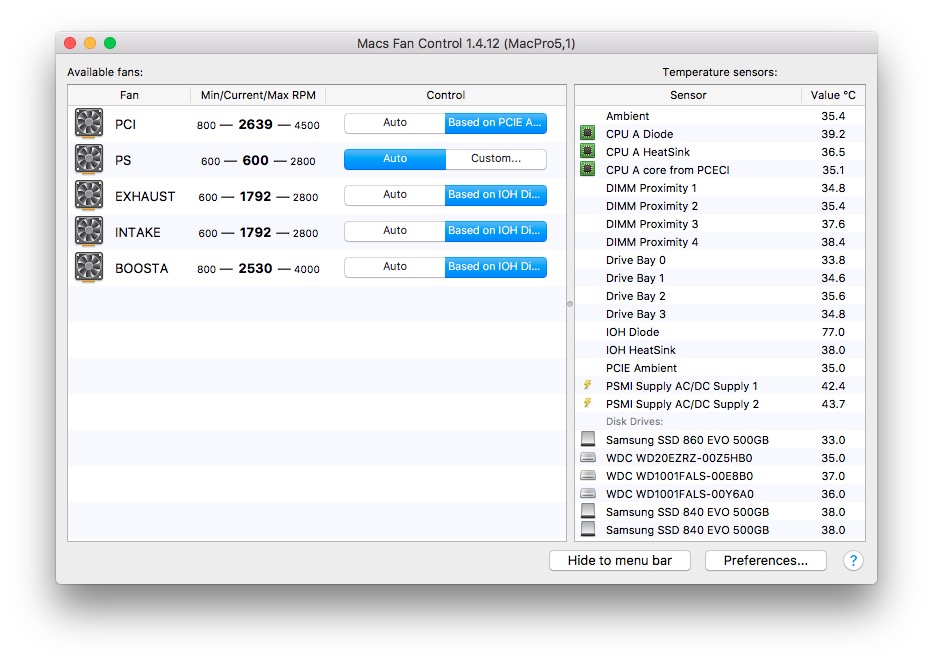 Lower temps are always a laudable goal, but I think people sometimes get too hung up on them, it's worth remembering that these machines were designed to run 'warm but within spec' and that's OK, anything within spec and stable is acceptable, you might want cooler but in the grand scheme of things it won't make much difference, if things aren't actually overheating then it's a mostly theoretical longevity argument. After all, the vast majority of Mac Pros that are out there have been running for about a decade with nothing other than the SMC defaults, it's only us geeks who like to tinker who ever both actually checking on temps, those thousands of machines have done OK on the default SMC so far, and they're still here...