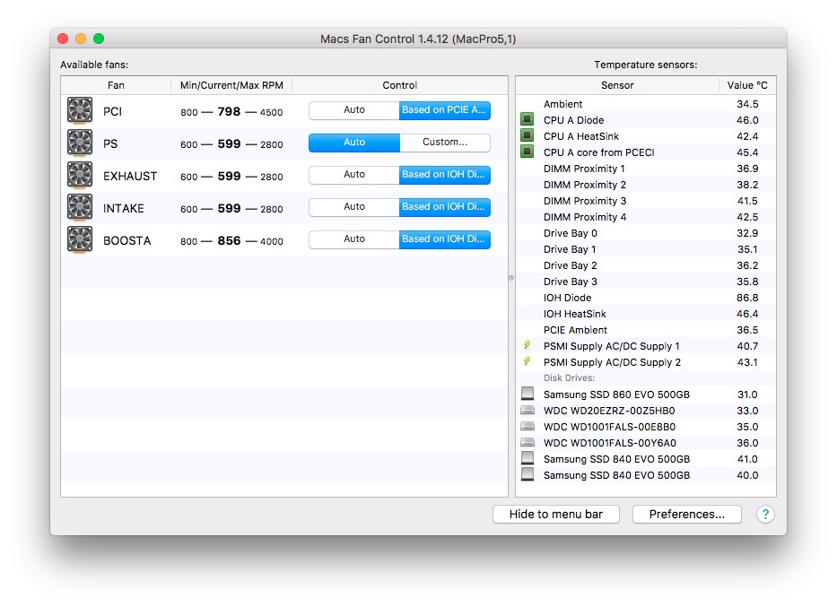 Had some flakiness (boot drive SSD array disappeared!), thought it might be heat related, posted Macs Fan screen shot, engineer buddy said get my machine to a shop fast, the Northbridge was getting too hot (about 150ºF/66ºC). No broken spring clips on the heatsink, everything cleaned out, new thermals... Northbridge NOW runs between 95ºF/35ºC and 110ºF/43ºC (today's ambient here is going to get at least 5º hotter soon). I AM concerned about the IOH Diode though. They put a temp sensor on it for a reason I would guess. I've seen similar cMPs of my vintage running way cooler.