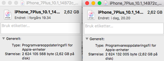 10.1 beta 5 on the left and 10.1 on the right. The language is Norwegian so size is the same as "Størrelse" in my screenshot.