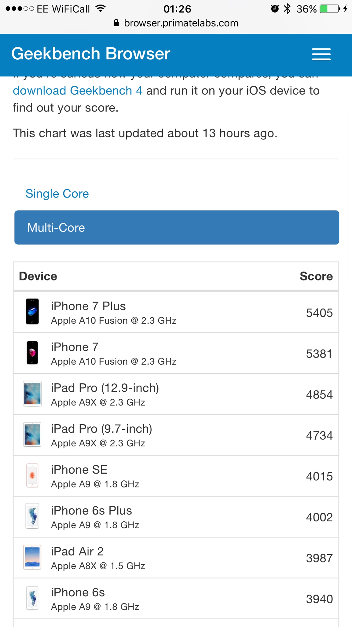 Wow! I've just installed beta 4 on my iPhone 7 Plus, and the performance is phenomenal! The lag has certainly gone, but I'm not sure on the battery drain yet. Mine is currently on charge ready for tomorrow. Had to run a Geekbench to make sure. Attached are my results, and also the results published on the geekbench website for the iPhone 7 Plus.