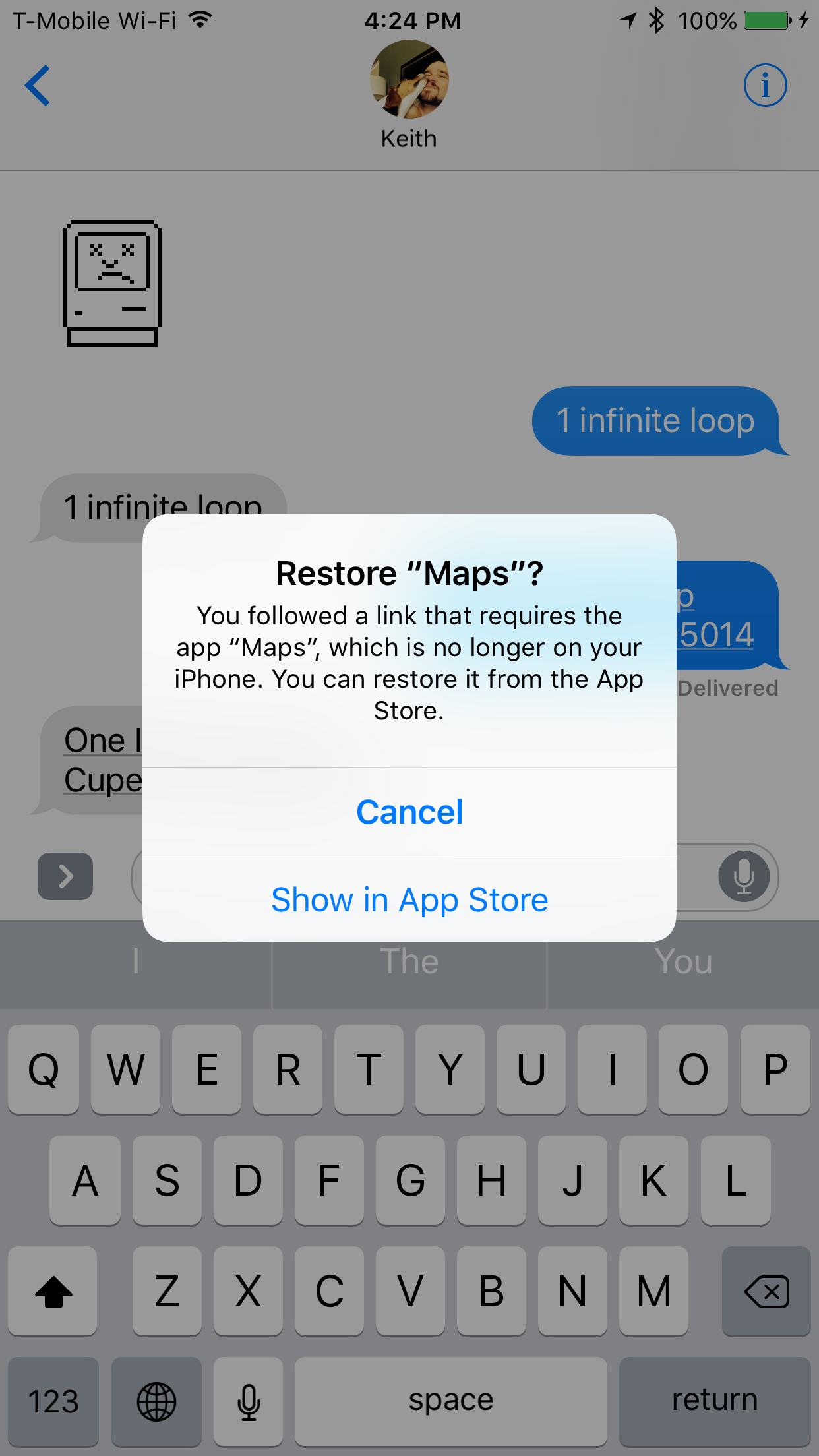 ownloaded the Apple Maps app from the AppStore, it was instant. This leads me to believe that you don't actually delete the apps, just hide them. It was seriously instant; I tapped the cloud-like download button, and the 'open' button instantly appeared.