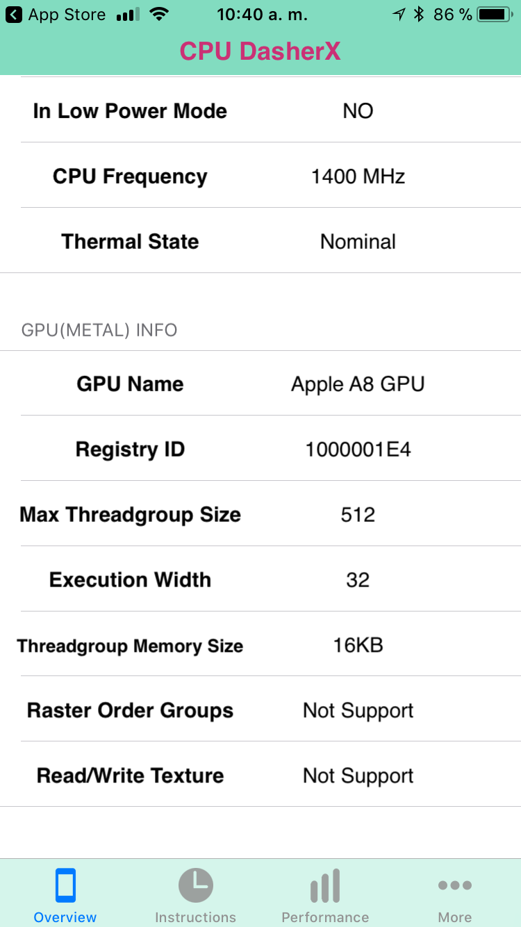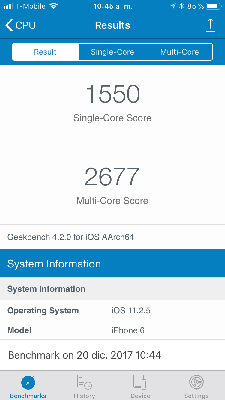 Please Radon, don't state "facts" of which you have no clue or first hand knowledge. Attached are screen shots from my iPhone 6 (16 GB) for GeekBench 4 and CPU DasherX proving otherwise.Run a Geekbench score on your iPhone 6. Likely its being throttled by Apple.
