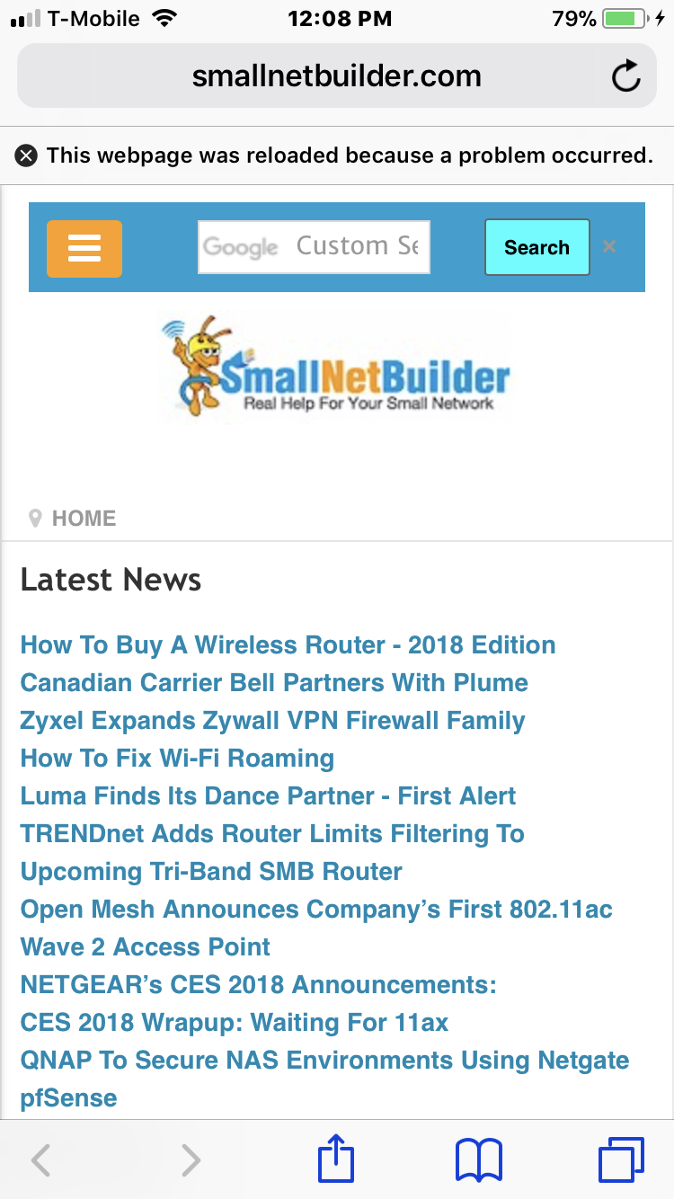 No issues on smallnetbuilder.com on iPhone 8 Plus or on iPhone 6, although the 6 seems to be loading even though the website is usable. That site is awful on mobile though, and I would assume if you are using a ton of apps those phones with 1GB ram will struggle.