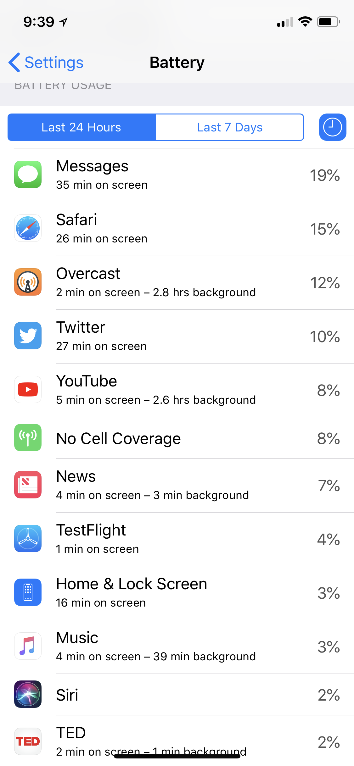 Looks to me like your biggest battery drain could be your cell signal.... if your phone doesn’t have a strong signal it’s periodically ramping of the power of the antenna to look for better signal. Try airplane mode when you know you are going to have little to no signal for a longer period of time. my 7 does terribly if I have less than 3 bars. Oh and your YouTube app seems to be stuck in the background. I’d manually kill that app after you are done using it till 11.4 is out of beta.I was wondering why my battery life was bad, but looked and realized it was iMessage. Weird. Has iMessage in iCloud really causes this much trouble for anyone else?