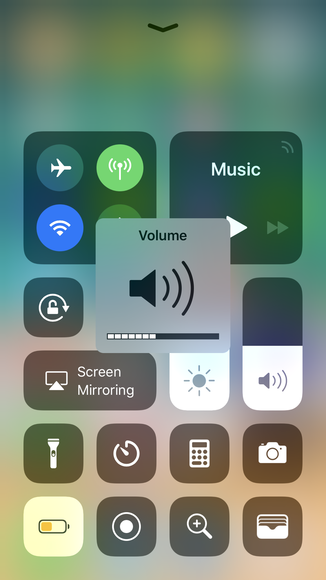 I believe the volume slider in the control center is for media volume (ie., NOT ringer volume) and the overlay that pops up over the control center when you use the side buttons is for the ringer volume. Two different volume adjustments, two different volume indications. Makes sense to me that one pops up over the other.......