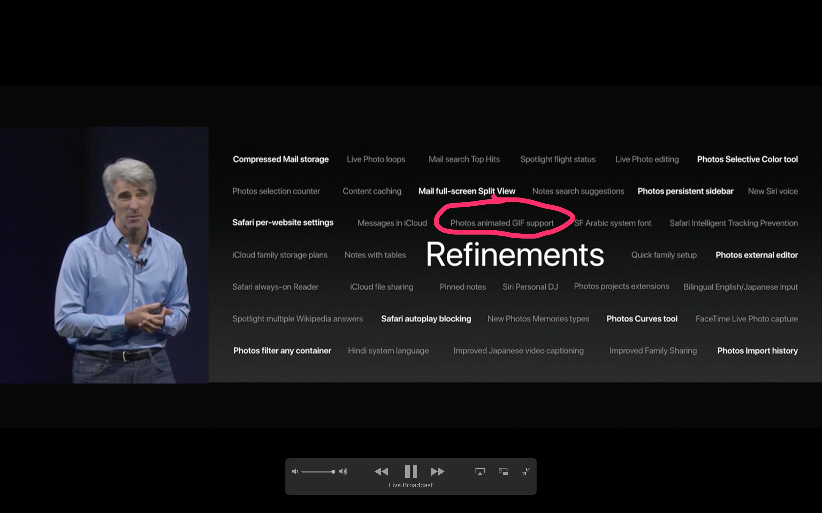 Yes, GIFs are now suppprted in photos. Folder automatically created to group all saved GIFs.Can anyone comment on GIF support in Photos? The High Sierra feature slide shows that the macOS Photos app now supports GIFs.