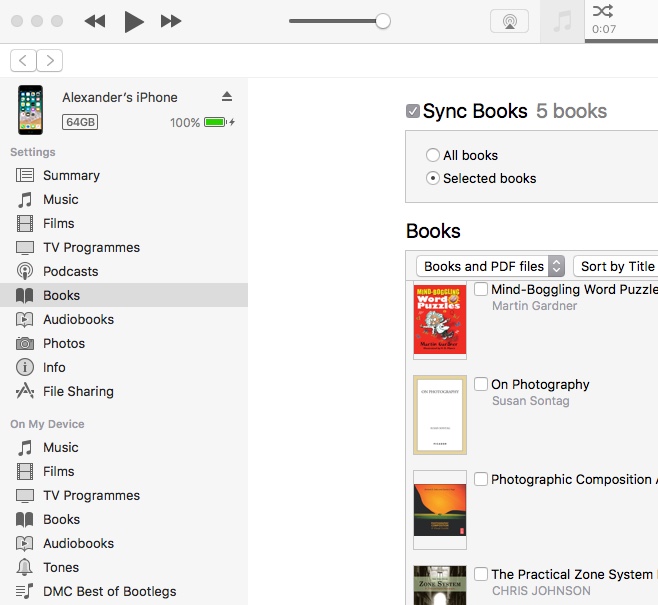drag the files onto the devices on the left side of iTunes.