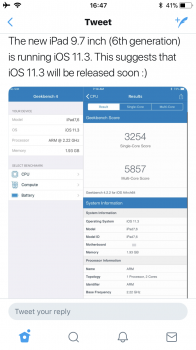 Don’t think this necessarily means anything. I’m sure they are testing the new iPads with different builds just like they did when the X started showing up on Geekbench running 11.1 but shipped with I think 11.0.3.iOS 11.3 as we can see above, so yes. This means iOS 11.3 can´t be far.