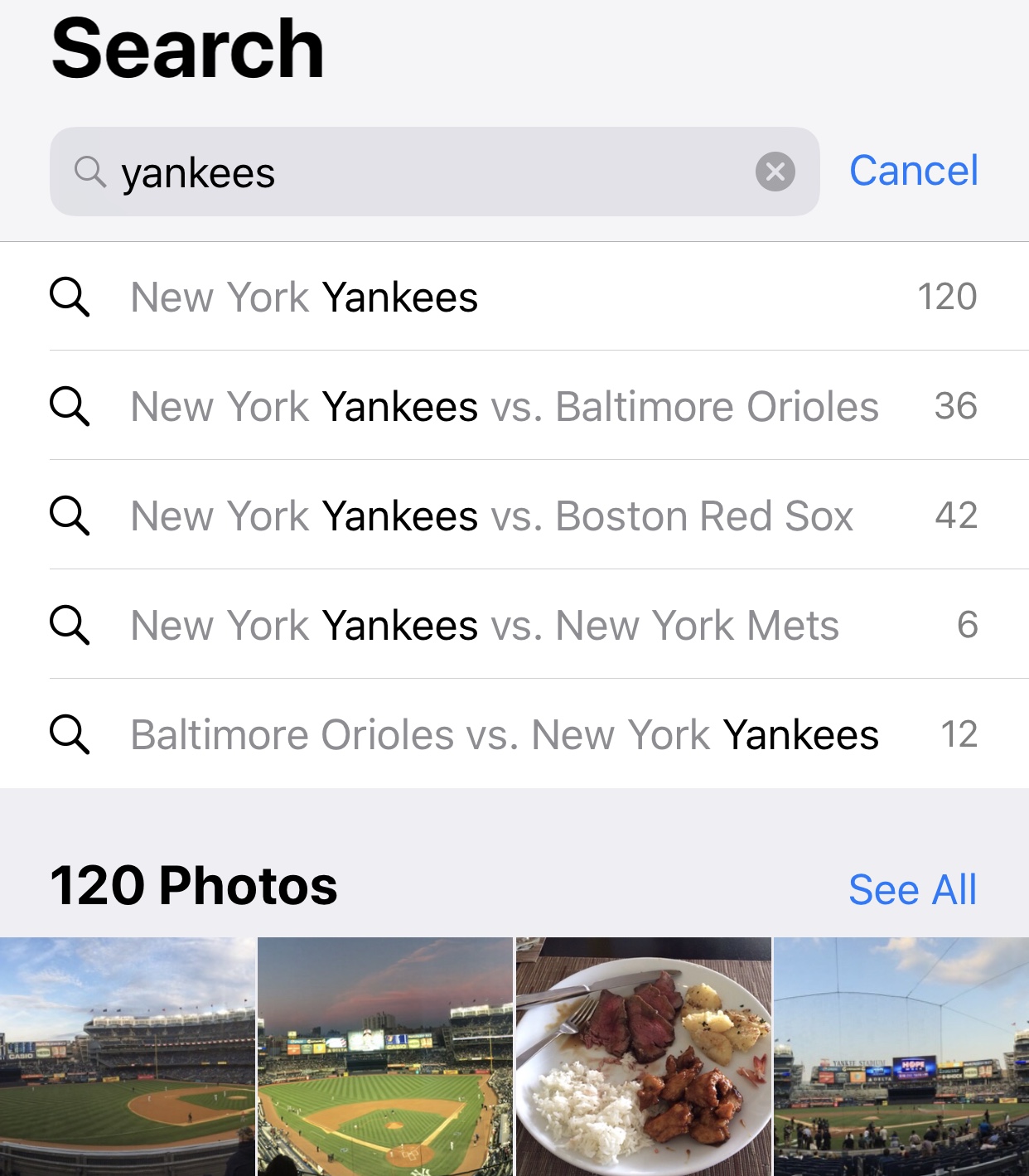 In the photos app, if you type in the name of a band, it’ll show you pictures from concerts you took of that band. I knew it could recognize date and venue, and even categorize photos in a concert setting, but I had no idea it could recognize specific concert events as well.