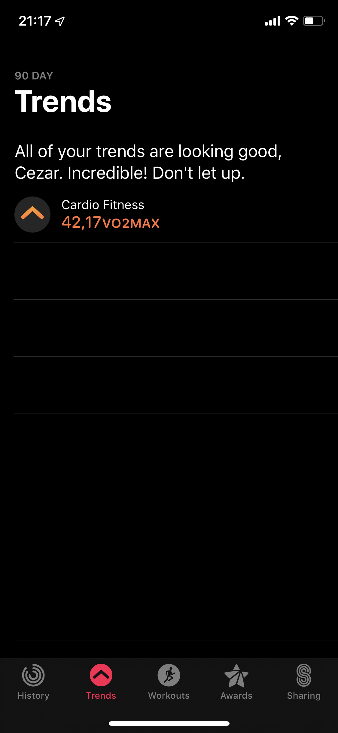 My is okCan anyone confirm the trend page in activity as functional? I’m only seeing VO2max and nothing else. Wanna know if it’s a bug or is just me.