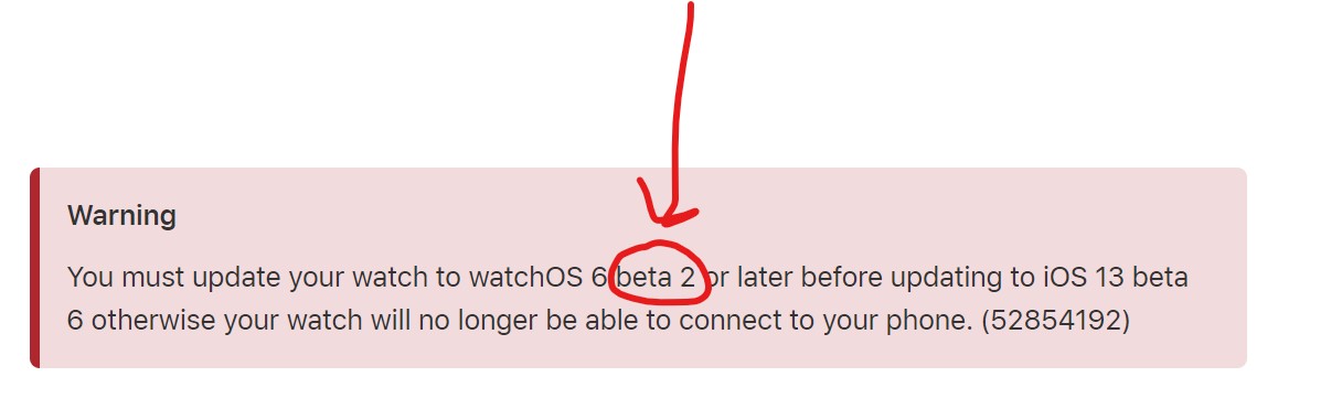 Boy this one refuses to die. I will post one more time: the requirement on the Watch side is to be at least at Beta 2 only. So, unless you downloaded WatchOS 6 beta 1 and have stayed there, you're fine.How are they going to release the Public Beta with this whole AW beta requirement? Seems like it’s going to cause several people to have to stay on Beta 5 or unknowingly screw up their watch connecting. It was a dumb move by Apple.