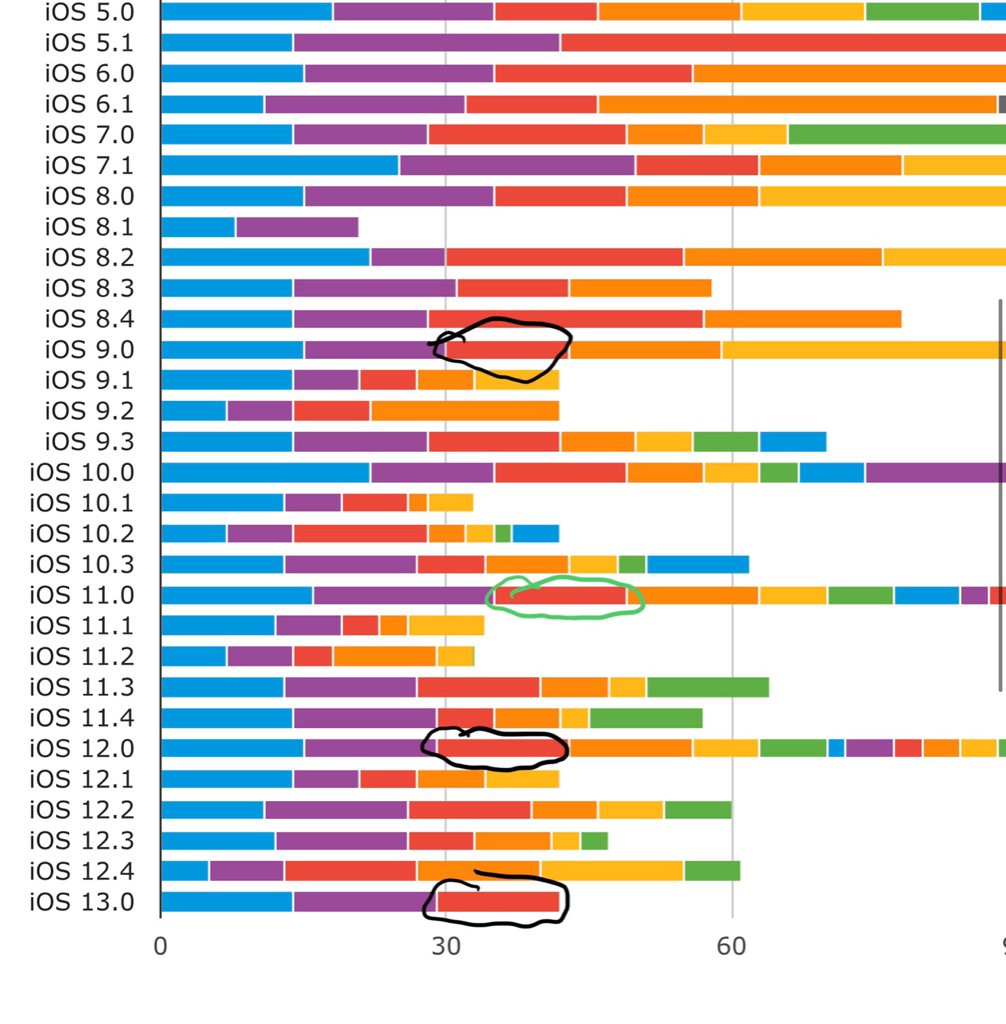 Finally, the the July 4th holiday: this is a known impediment so they definitely plan around it. It has not impacted other years (see 2nd chart below). iOS 11 had its own issues with beta 2 so should not be considered.