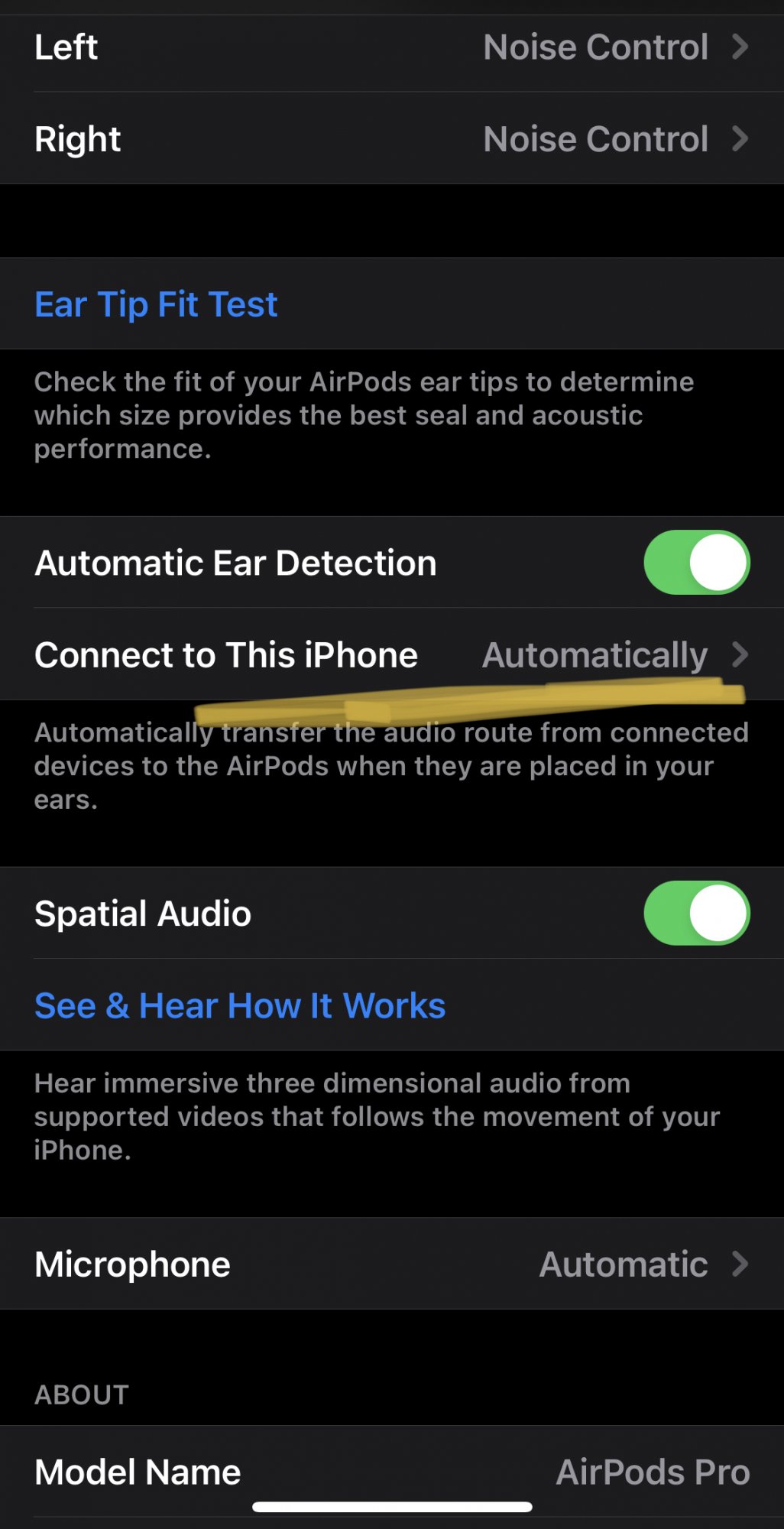 Unfortunately I don't seem to have a variety of those options for my AirPods, including the "Connect to This iPhone" one. Sounds like perhaps it's dependent on AirPods and/or iPhone model, which is a bit odd and unfortunate.Bluetooth-> “Your” AirPods