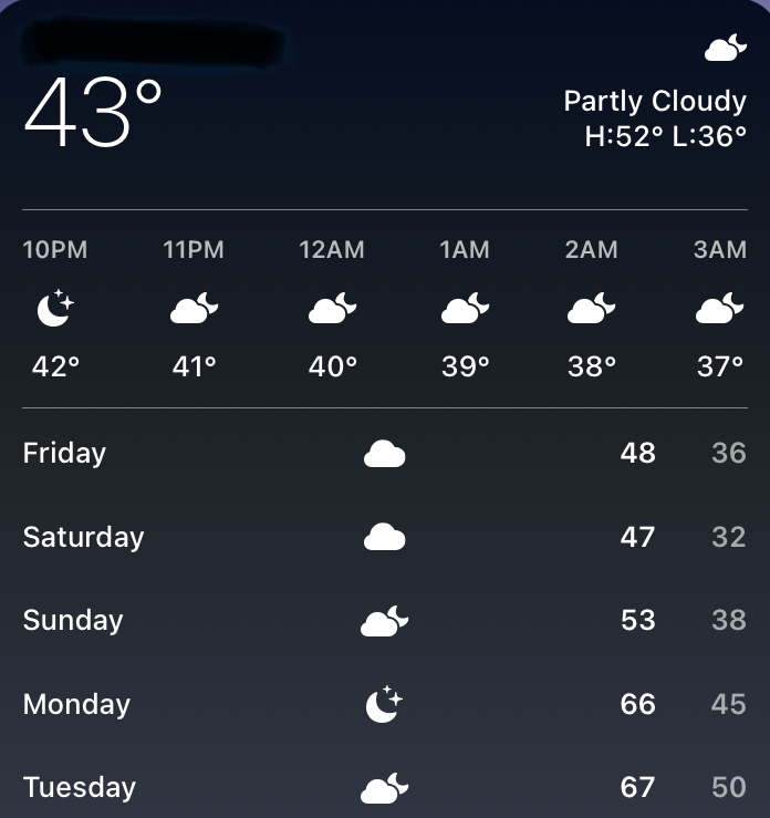 11PM - the Widget and App don’t match at all. Current is off by 3 degrees, forecast and pretty much all else disagree