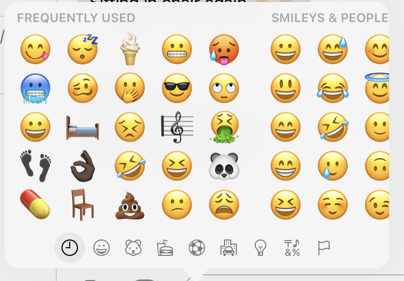 When sending a text via Messages - IPP is mounted on MK (Magic Keyboard) - when triggering the Emoji select I get the follwoing Frequently Used selection:
