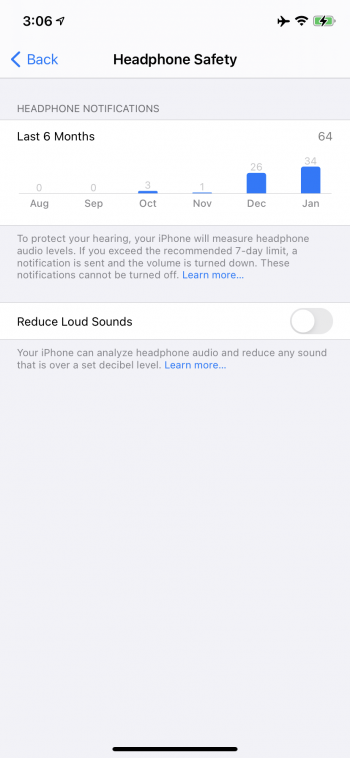 Intersting, Yeah my top section is another toggle beside the "Headset Notifications" and a "last 6 months" counter just below it. However the option you are showing "reduce loud sounds" should keep it from lowering the volume if its switched off. Perhaps its a bug after-all and that switch is being ignored???? Mine seems fine with it off and only drops when its on.only if you haven’t restored your phone or bought a new iOS device since iOS 14.2. If you have done either of those, this is what that section looks like. Never had the volume issue until I restored a few weeks ago.