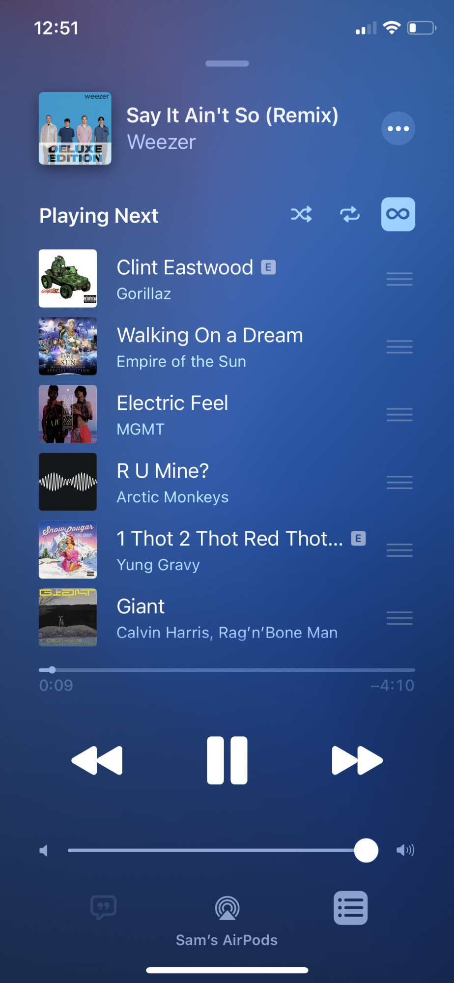 Hmmm I don’t use Apple Music but I’m guessing that’s Autoplay which is a new feature that when you get to the end of your playlist, it keeps playing finding similar tracks.View attachment 927028Forgive me if this has been said but what’s that infinity icon next to the repeat button?