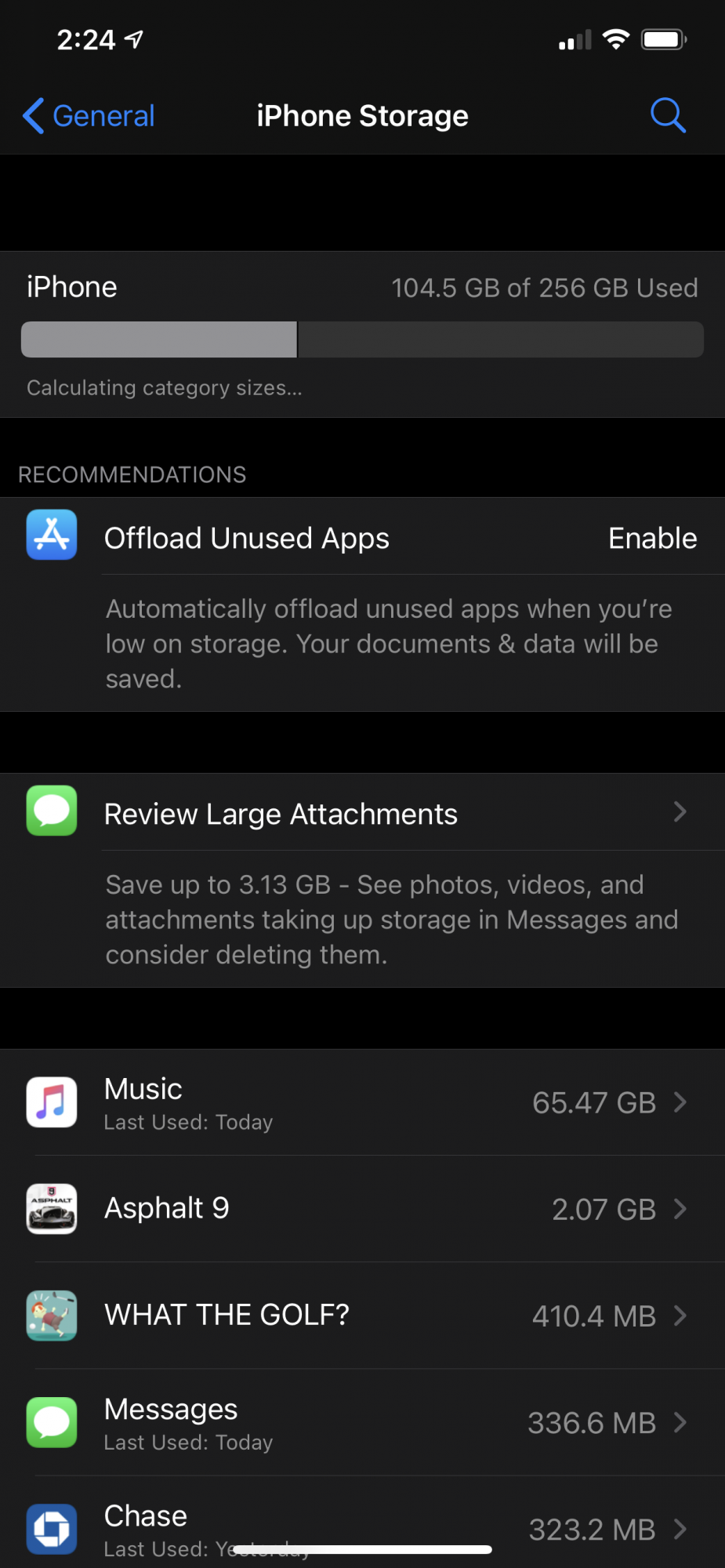 Going to storage > Messages > Check big attachements (or whatever it’s called in English) crashes the settings app every time