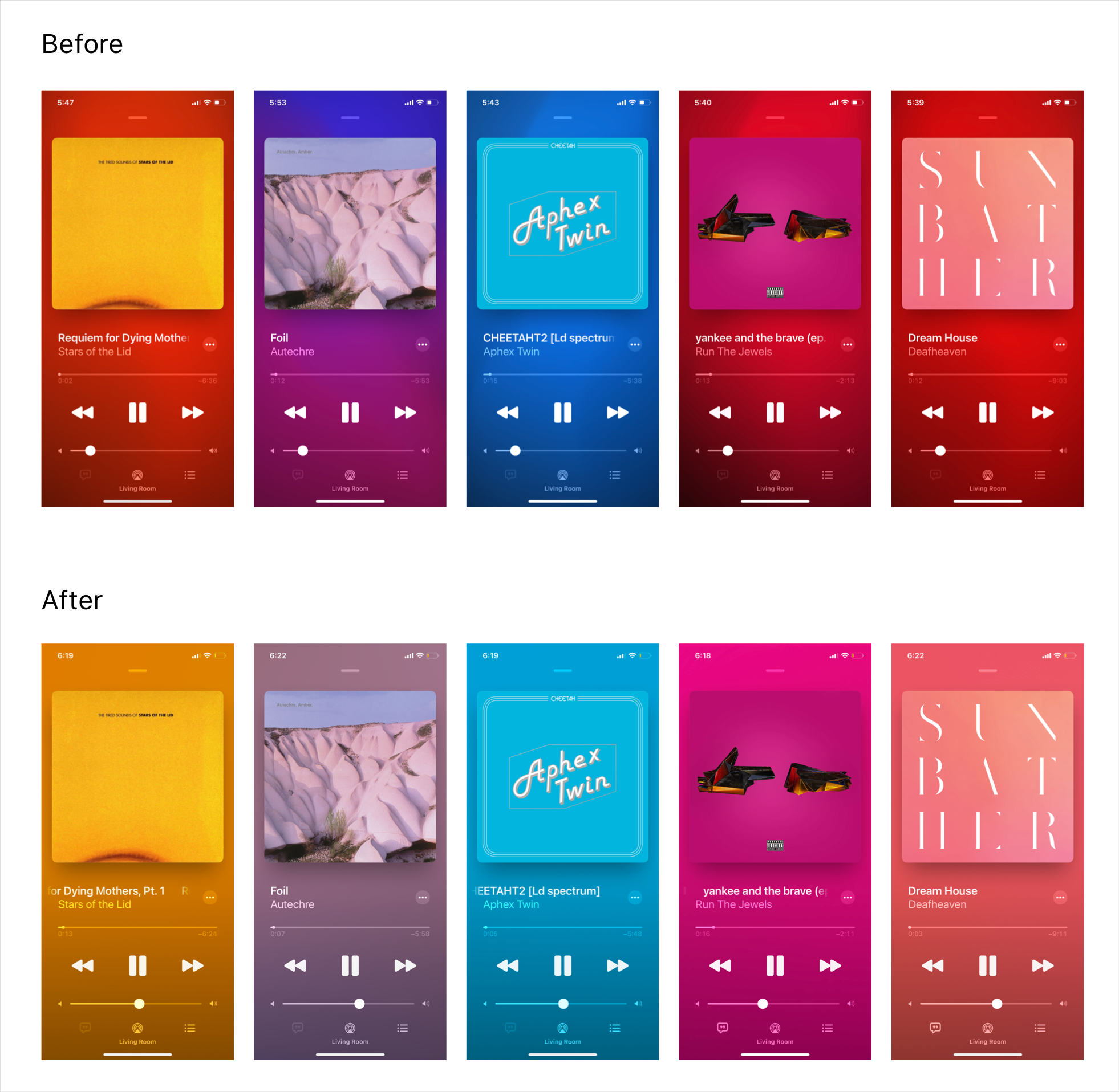 Apple might have listened to my feedback... Since beta 1, the colors in the music app where way off for any subtle color. Pink always turned to red, yellow turns to burnt orange. It was the first thing I checked with every beta, and now it's been fixed. Not that it was a major bug, more of a design curiosity.