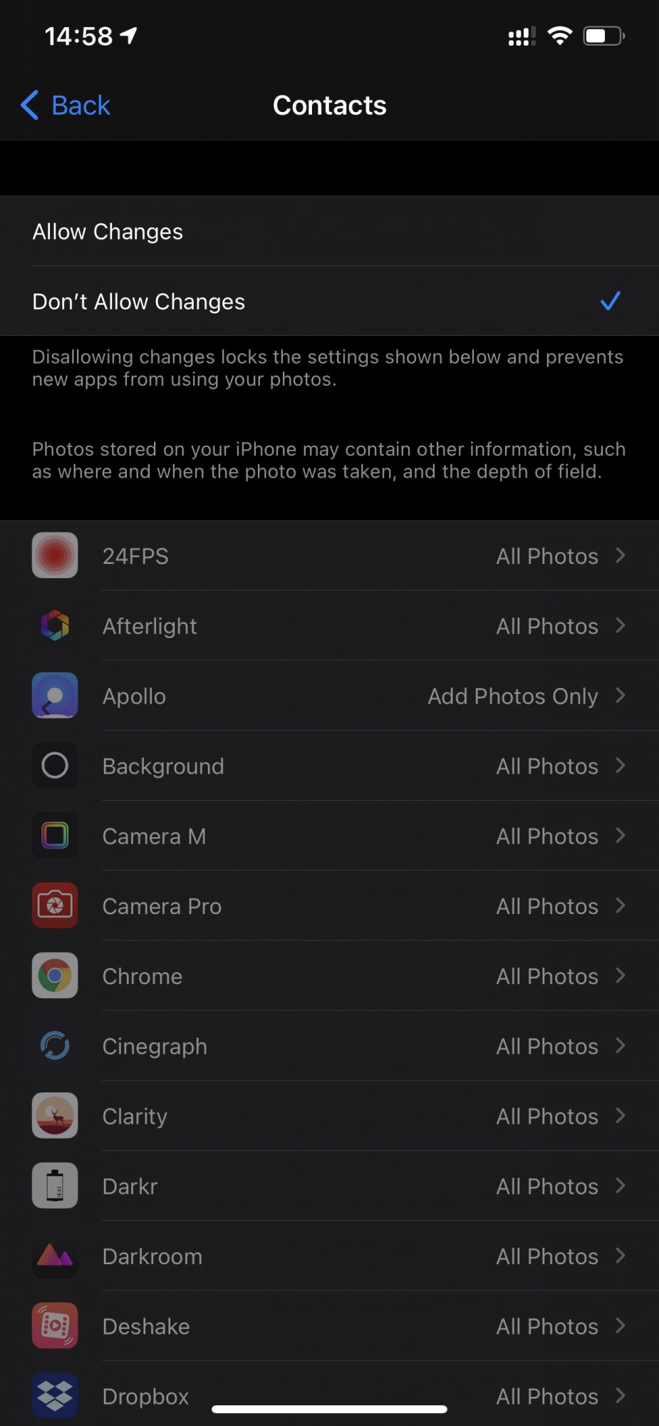 Are any of you also using Content & Privacy Restrictions? When I check my Contacts section I see a list of apps that have access to Photos instead of apps with access to contacts. I can no longer make any changes to permissions either. I wonder if this issue is related to Spotlight issue?View attachment 957016